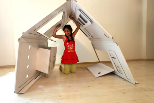 Liya Mairson 設計了一款紙板做的玩具屋剛好可以滿足小朋友的需要,這個商品稱作 “My Space" 。