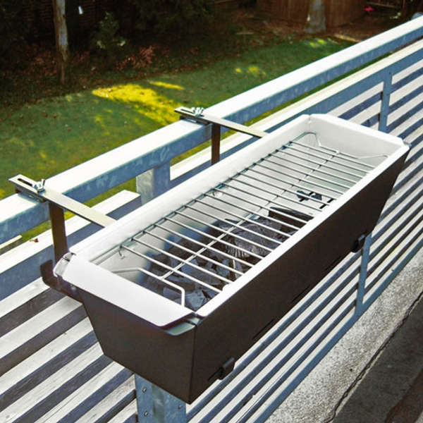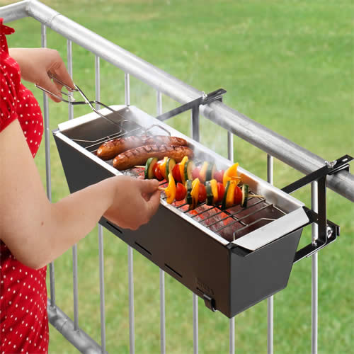 假如您的陽台有欄杆護欄,你就不必蹲在地上架烤肉架,有一款由 Henrik Drecker 所設計的「The Bruce Grill 烤肉架」,這個是由花架發展而成的創意,散熱與通風都兼具,站著烤肉也算符合人體工學的一種設計。不用特別找地方烤肉,利用你的陽台就可以過個愉快的中秋。