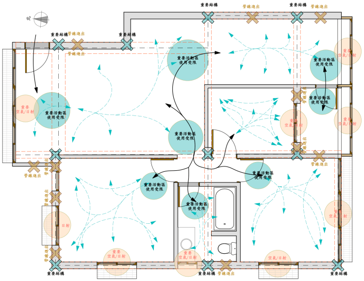 進入實質空間規劃:依重要且關鍵位置來進行。