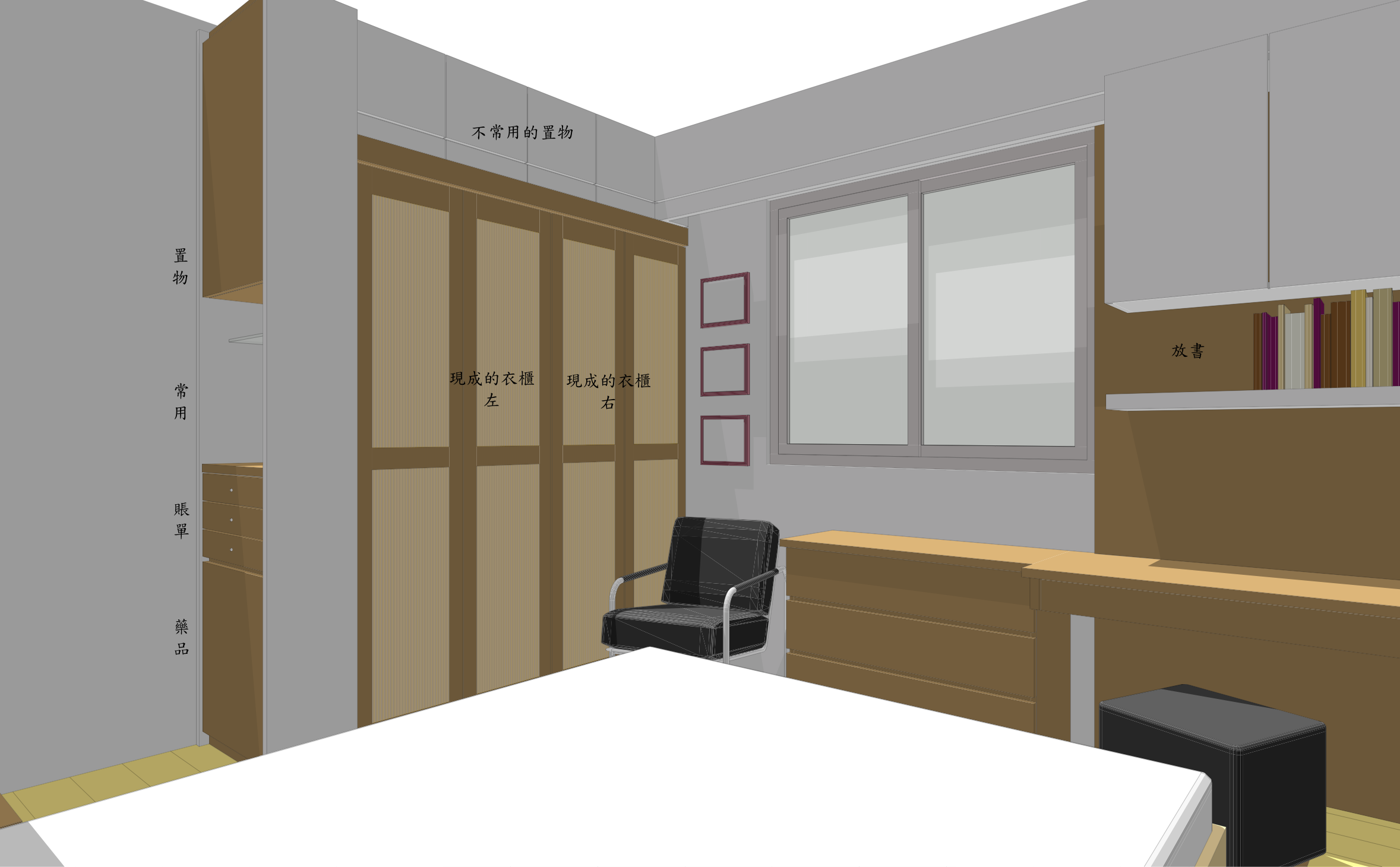 - 保留現有的兩組衣櫃。