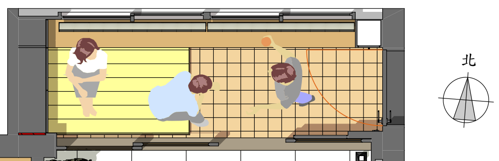 一個溫度環衝區就在此誕生了,在這裡發展出來的玄關雖然會吃掉一部份的室內面積,只要設計得宜反而讓生活變得豐富起來。不僅如此,還衍生出一個複合休閒空間,可以在此坐著穿鞋,並可沈思、聊天、看窗景。當客人太多而不敷使用時,只要改變拉門位置,搖身一變成為客廳一部份,人坐在這裡也可以和沙發、餐廳互動起來。
