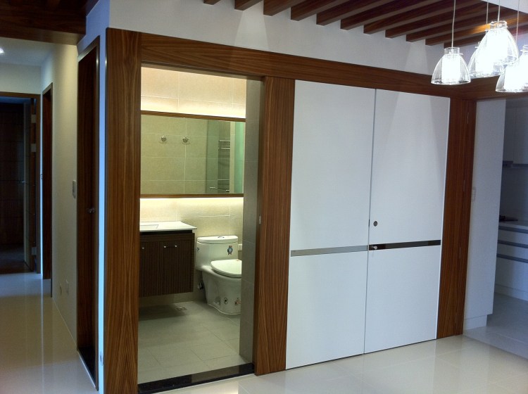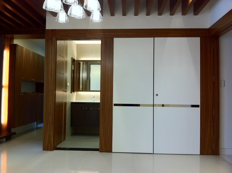 左邊的橫拉門有其特殊的因素,或許會納悶:「為何廁所要開兩個門」,由於篤信風水學說,因為磁場需要一扇風水門,主人又不希望從外面進門就看到厠所的感覺,所以造形風水門因此形成!