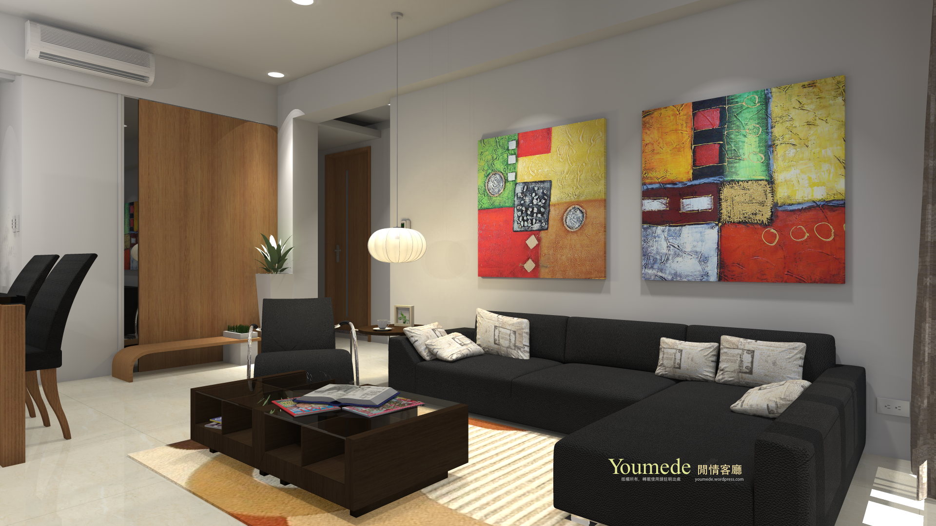 輕巧的主人椅混搭慵懶的L型沙發可是一家人在這𥚃連絡感情的地方,鮮豔抽象圖案的裝飾使得整個空間感覺變得浪漫,活潑地毯讓人喜歡在這𥚃聊天。
