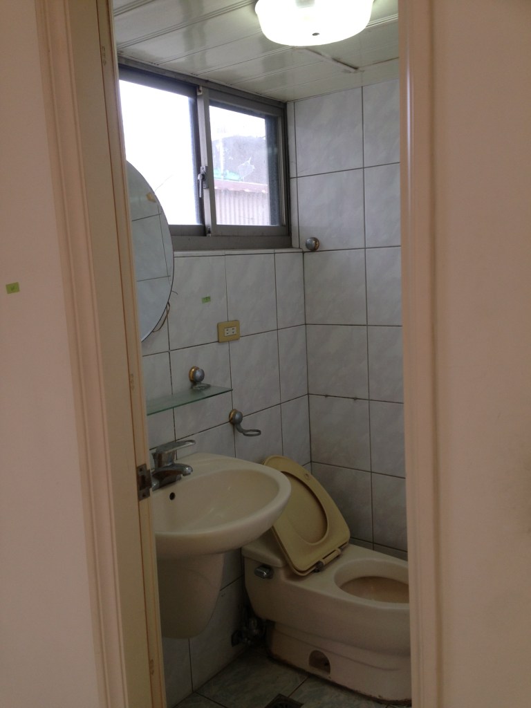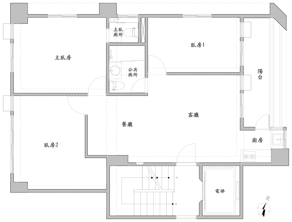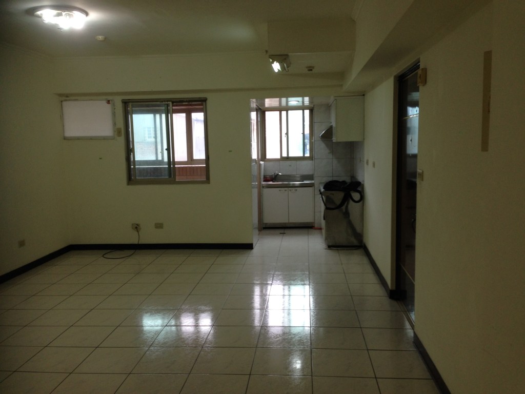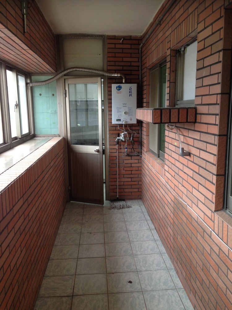 公共空間包含大門口、客廳、餐廳、廚房、後陽台、公共廁所,窗戶不大且面向東北方進光量不大,由於建築物四周空曠,冬天時東北季風非常大,會從油煙機風管竄入造成排煙無效。