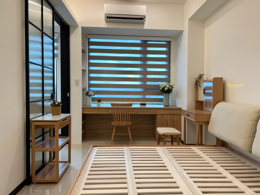 - 功能整合:書桌、衣櫃、床組一體規劃。