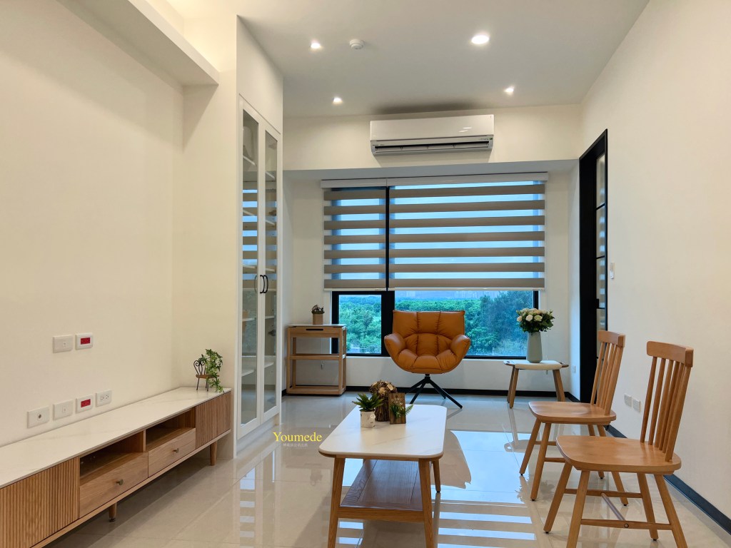- 西曬面採用遮光窗簾,搭配間接照明調節光線。