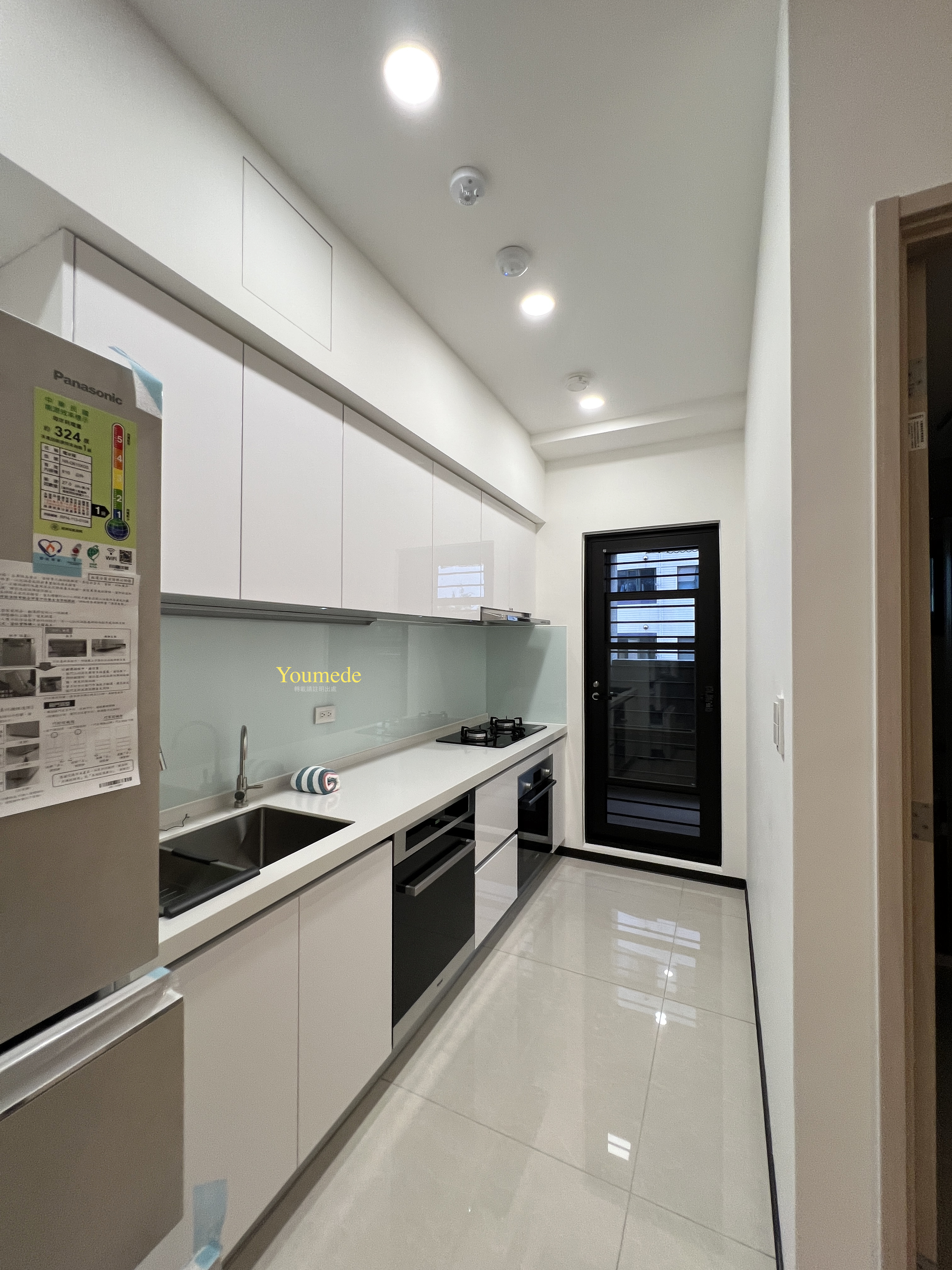 - L型廚具搭配上方吊櫃,收納最大化。